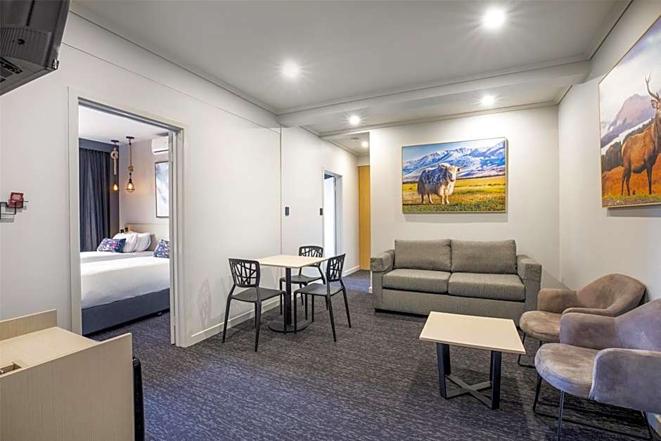 This unit is fitted with a queen bed and two single beds. The separate lounge and sitting area comes furnished with a flat screen TV. The studio also has a microwave, bar fridge, tea & coffee making facilities and ironing facilities. The unit is complete with a private bathroom with a walk-in shower.